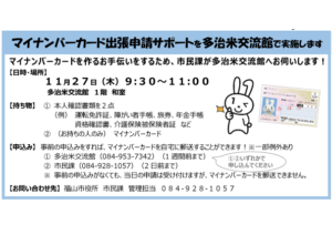 11月27日(木)マイナンバーカード出張申請サポートを多治米交流館で実施します