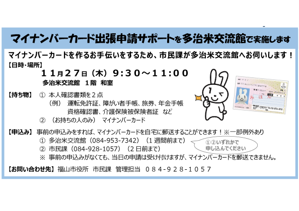 11月27日(木)マイナンバーカード出張申請サポートを多治米交流館で実施します