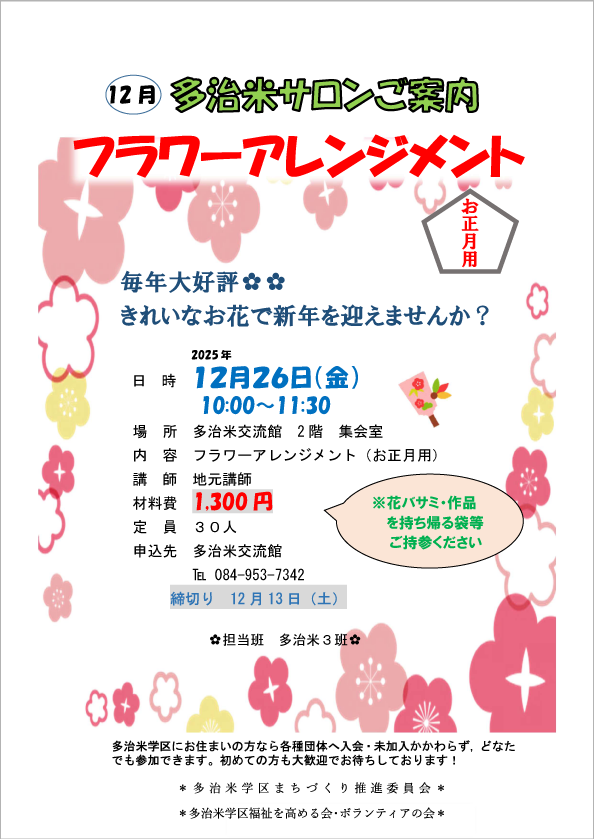 ※花バサミ・作品を持ち帰る袋等 ご持参ください